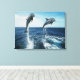 Un tableau d'une paire de dauphins qui saute de l'eau de l'océan en synchronisation.