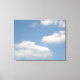 Cette impressionnante impression de toile présente une photographie de quelques cumulus blancs moelleux flottant tranquillement à travers un beau ciel bleu.