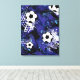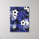 Cette toile étirée murale est illustrée d'un imprimé coloré bleu multicolore d'art de football. Customisez cet objet ou achetez tel quel. Image sous licence