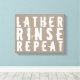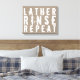 Le design moderne rend les pokes amusants à votre processus de baignade avec cette toile enveloppée dans le bronzage et le blanc qui fait savoir que dans cette pièce il s'agit de suivre les indications sur cette bouteille de shampooing, comme dans : "Lather, Rinse, Repeat". Parfait pour ajouter une touche de modernité branchée à une chambre fonctionnelle.