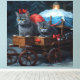 Toile Décor de Noël Oriental Blue Cat Snowy Sleigh