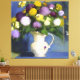 Décor Mur De Fleur Délicat. Tranquillez votre environnement avec cette aquarelle stylisée apaisante. Des bleus, des jaunes et des violets délicats créent un vase serein de fleurs.