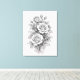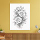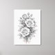 A beautifully detailed pencil-style illustration of a classic rose bouquet, featuring three fully bloomed roses surrounded by delicate buds and softly veined leaves. This black-and-white artwork highlights fine linework and subtle shading, creating a timeless, elegant look that works with any aesthetic.