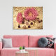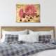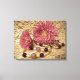 Cette charmante impression de toile enveloppée a une allure vintage et désuète. Les mamans rose magenta et les perles blanches aux pierres violettes sont posées sur la dentelle contre un arrière - plan jaune pâle. La vignette plus sombre aux coins ajoute une sensation dramatique.