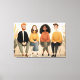 Four diverse young adults sit side by side in relaxed poses, sharing smiles and quiet connection. A bearded man in glasses, a woman with long brown hair, a woman with radiant curly hair and gold hoops, and a man with curly dark hair create an inclusive, joyful group portrait set against a soft beige backdrop with gentle leafy accents. The warm color palette and cozy style radiate friendship, belonging, comfort, diversity, and everyday happiness—perfect for living rooms, bedrooms, therapy offices, community spaces, dorms, home offices, or as uplifting gifts for friends, mental-health advocates, teachers, parents, or anyone who values representation, warmth, and human connection.