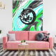 L'art tribal. Le dragon qui tire. Noir, vert et blanc verdir peinture fluide art.