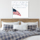 Une photo du drapeau américain agitant dans la douce brise. Dans une police de calligraphie bleu foncé est une ligne du paragraphe d'ouverture de la Constitution des États-Unis, "Nous, le peuple de ces États-Unis forment une Union pour établir la Justice, assurer la Tranquillité, fournir Bien-être, sécurité de la Liberté pour nous-mêmes". Copyright ©Kimberly J Tilley. zazzle.com/store/developingnature