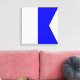 Ce drapeau maritime représente la lettre A (appelée "Alfa") du Code international des transmissions (ICS) et des normes maritimes de l'OTAN. Il peut être utilisé avec d'autres drapeaux pour épeler un message. Dans ICS, un seul drapeau A peut signifier "J'ai un plongeur (ou un explosif) en bas, alors s'il vous plaît garder clair et fonctionner lentement." Le drapeau A peut être combiné à d'autres drapeaux pour des messages courts spécifiques, tels que : AC signifie "J'abandonne mon navire"; AD signifie "J'abandonne mon navire à cause d'un accident nucléaire qui est une source possible de rayonnement"; AN signifie "J'ai besoin de soins médicaux"; et MAB signifie "Je demande un rendez-vous à la position suivante." "A" est la troisième lettre la plus couramment utilisée en anglais. Écrivez vos propres messages avec A et d'autres drapeaux maritimes!