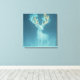 A white, almost transparent deer emerges from an icy blue haze. Its antlers are made of geometric light.