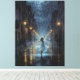 Une scène de nuit numérique rêveuse peinte à l'huile où une fille danse joyeusement sous la pluie dans une rue lumineuse de la ville, des lumières reflétant le pavé humide dans une célébration éblouissante et romantique de la liberté et de l'amour.