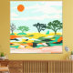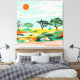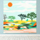 "Echoes of the Sahara" capture la beauté sereine d'un paysage désertique avec un mélange abstrait de tons chauds et de tonalités vibrantes. Les arbres minimalistes et le soleil orangé évoquent une atmosphère paisible et intemporelle.