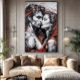 An intense kiss between two faceted, geometric faces—skin fractured into planes of light and shadow—while crimson ribbons flow like blood, passion, or fate. The stark contrast of monochrome and vibrant red creates dramatic tension. A powerful artwork for fashion, film, literature, or emotionally resonant luxury brands.