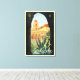 Illustration vintage d'une affiche de voyage européenne de Palerme, Sicile, Italie représentant l'église de San Giovanni degli Eremiti, les jardins et le clocher vus à travers des arches architecturales. Église de Saint-Jean-des-Ermites.