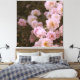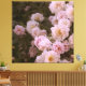 Branches de roses romantiques en poudre rose sur un arrière - plan de feuillage foncé, photographie.