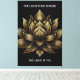 Créez une oasis de paix pour vous-même avec cette impression de toile étirée, qui présente un design généré par l'IA d'une fleur de lotus doré avec la sous-diction (personnalisable), "la lumière en moi honore la lumière en vous." La Journée internationale du Yoga est célébrée le 21 juin. Design © W.H. Sim. Voir plus sur zazzle.com/word2art