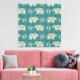 A water color elephant pattern created in a soft, teal color. Artiste: Daphne Brissonnet