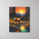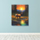 Elk Standing Mountain Steam Coucher de soleil coloré toile Imprimer