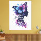 Ce design saisissant présente un papillon qui s'élève gracieusement de la silhouette d'une femme, incarnant la transformation. Le texte fluide 'Be Your Own Muse' complète l'art en bleu, violet et rose doux, créant un morceau inspirant parfait pour les sacs d'achat. C'est une image générée par l'IA.