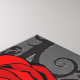 Arrière - plan gris avec des roses rouges sur une vigne.