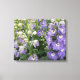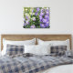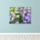 L'art de la toile enveloppée est représenté avec une photo de jolies fleurs de delphinium violet. Photographe D. Breit