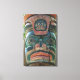 Poteau totémique, sculpture monumentale taillée dans un grand arbre.