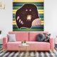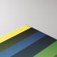 Dessin de taupe et rayures jaunes, vertes, bleues. Décor aux murs frais.
