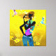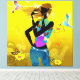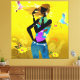 Ramenez les années 1970 avec cette abstraite fille en silhouette avec des fleurs et des tourbillons de colibris brillants Parfait pour le bureau, la maison ou le hall. Peut facilement être dimensionné vers le bas -