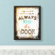Un mur de cuisine en toile enveloppée a typographie mignonne citation humour sur le design de style rustique avec baiser le texte de cuisine dans les tons sépia et de style rustique marron chic. Copyright de l'oeuvre Ann Powell
