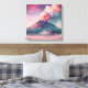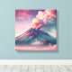 Une représentation fantaisiste d'un volcan qui explose avec de la fumée rose douce sur fond de nuages blancs moelleux. Cette oeuvre unique apportera une touche de fantaisie et d'émerveillement à n'importe quelle pièce.