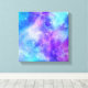 Impression de toile avec un arrière - plan abstrait cosmique. Couleurs vives et éclatantes de bleu clair, rose et violet. Des étoiles blanches éparpillées un peu partout.