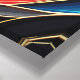 OEuvre d'art présentant la tête d'un cheval puissant dans un mélange ludique de rouge, bleu, et de tons noir et blanc cassé. Les lignes dorées apportent une touche de magie sur fond sombre, donnant vie à l'esprit majestueux de l'étalon dans une composition simple mais vibrante.
