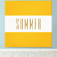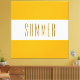 Ce design saisonnier amusant comprend une large bande horizontale centrale blanche avec un texte d'été brun doré et haut qui peut être personnalisé. Les larges bandes du haut et du bas sont de couleur jaune doré vif.