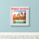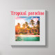 Design d'hôtel de plage tropical en toile étirée, avec arbres et feuillage. Cela saisit l'essence d'une expérience de vacances tropicales sereines.