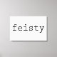 Avoir ou montrer de l'exubérance et une forte détermination, c'est du foutu. Est-ce vous ou quelqu'un que vous connaissez ? Montrez-le avec le mot "feisty" écrit en noir dans une police cool. L'arrière - plan est transparent pour que vous puissiez le modifier. Il suffit de cliquer sur le bouton "Customisez-le !", puis de sélectionner une couleur Arrière - plan imprimée dans la barre latérale. Lorsque vous avez terminé, cliquez sur "Ajouter au panier" pour acheter votre design customisé. numériquement créé une image. Copyright © 2011 Claire E. Skinner. Tous droits réservés.