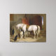 Une belle impression de "Favoris, la propriété de S.R.H. Prince George de Cambridge" une peinture à l'huile sur toile créée entre 1834 et 1835 par le peintre anglais Sir Edwin Henry Landseer, RA. Découpé en 1850, sir Edwin Henry Landseer, RA était un peintre et sculpteur anglais bien connu pour ses peintures d'animaux et en particulier de chevaux, de chiens et de cerfs - ses oeuvres les plus connues sont les sculptures de lions dans le Carré Trafalgar. Le fils du graveur John Landseer A.R.A., Edwin Henry Landseer (1802-1873) est né à Londres. Landseer était quelque chose d'un génie dont les talents créatifs étaient reconnus tôt. Il a étudié sous plusieurs artistes, dont son père, et le peintre d'histoire Benjamin Haydon. Haydon a encouragé le jeune Landseer à effectuer des dissections afin de bien comprendre la musculature animale et la structure squelettique. En 1815, à l'âge de seulement 13 ans, Landseer expose son travail à l'Académie royale et à l'âge de 24 ans est élu un associé là-bas et un académicien en 1831. Plus tard, en 1866, Landseer est élu président mais refuse l'offre. On pense qu'à la fin des années 30 Landseer a subi une dépression nerveuse significative qui l'empoisonnerait le reste de sa vie avec des épisodes récurrents de mélancolie, d'hypochondrie et de dépression. Pendant les dernières années de sa vie, la stabilité mentale de Landseer fut un défi, et à la demande de sa famille, il fut déclaré fou en juillet 1872.