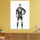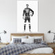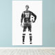 Monochrome watercolor depiction of a female soccer goalie holding a ball. The black and white tones with expressive ink splatters create a bold, minimalist effect. Perfect as a stretched canvas print for sports enthusiasts or modern interiors with a clean and artistic aesthetic.
