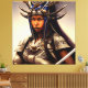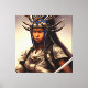 Cette oeuvre représente une femme guerrière africaine samouraïe au regard féroce et sans masque. Elle porte une armure traditionnelle de samouraï et est armée d'un katana. Sa peau foncée et ses traits faciaux forts transmettent un sentiment de force et de détermination. Son regard est intense et sa posture est confiante, elle véhicule un sentiment de puissance et de courage. L'absence de masque souligne encore plus sa force et son courage, car elle n'a pas peur de montrer son visage. Cette oeuvre est une représentation puissante de la force et du courage des femmes africaines.