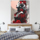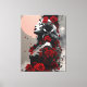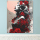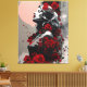Une femme magnifique aux roses rouges AI généré la peinture dans des couleurs minimes de rouge, noir, gris, et une pointe de rose.