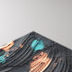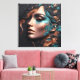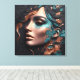 C'est un portrait captivant d'une belle femme. Conçue contre un arrière - plan au charbon de bois, l'oeuvre abstraite présente un mélange de teintes en cuivre et turquoise, gracieusement estampillée pour mettre en valeur des contours faciaux parfaits. Découvrez la beauté fascinante de cette composition unique