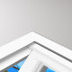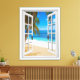 Mer Bleue Trompe L'oeil Photo avec fausse fenêtre vue sur la plage. Image optique effet spécial, avec fenêtre ouverte et belle vue sur la mer tropicale.