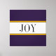 Les rayures "ruban bonbon" festive mettent en valeur la belle "JOY" dans une grande typographie élégante remplissant une bande blanche enneigée centre. De larges bandes violettes profondes et audacieuses au-dessus et au-dessous complètent la composition moderne festive. Les couleurs de bande de cette conception peuvent être customisées en modifiant la conception. Le texte peut également être personnalisé.