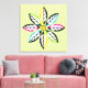 Design Feuille moderne et abstrait, avec une fleur, ses pétales de feuilles colorés avec centre jaune sur arrière - plan vert pâle. Deux en noir, jaune, deux en noir, aqua/turquoise, deux en noir, rose fushia et deux en noir, vert citron. Dans chacune d'elles il y a des feuilles blancs plus petits. Cette impression carré d'inspiration abstraite de nature a une atmosphère rétro et est entièrement personnalisable.