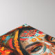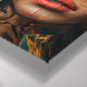 Cada detalhe da arte conta uma história: o olhar penetrante, cheio de sabedoria ancestral; as penas delicadamente posicionadas, simbolizando liberdade e conexão com o espiritual; e o fundo vibrante, que evoca a vida pulsante das florestas.