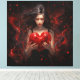 Dans une composition visuelle saisissante, une scène enchanteresse se déroule avec une fille vêtue d'une élégante tenue noire, berçant un grand coeur dans ses mains. Les cheveux noirs flottants de la fille ajoutent une touche de drame et de mouvement à la scène, créant un sentiment de beauté éthérée.
