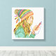 Toile d'une jeune fille portant un casquette boho et écoutant de la musique.