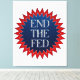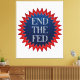 Cette peinture murale affiche les mots "End The Fed" avec une collection de billets de 100 dollars à l'intérieur des lettres sur un ensemble d'étoiles bleues et rouges dans ce thème rouge, blanc et bleu. Nos tirages sont imprimés avec la plus haute résolution sur papier d'archives coton-poly pour une impression résistante à la fondue durable de 40,00" x 48,60". Cette impression permettra d'ajouter à la carte un complément parfait pour égayer n'importe quelle maison ou bureau.