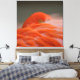 Un Flamant rose à travers ses plumes roses et blanches. Son oeil est juste visible.