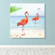 Toile Flamants roses rouges et palmiers vifs sur la plag
