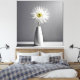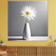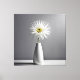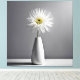 Fleur blanche unique en vase gris contemporain avec ombre sur dégradé gris argenté arrière - plan