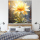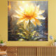 Une fleur blanche et jaune baigne dans la chaleur du soleil, rayonnant l'énergie vibrante sur la toile. Des coups de pinceau audacieux et expressifs dansent à travers la surface, capturant l'essence de la beauté de la nature dans une symphonie de couleur et de lumière. Les pétales blancs de la fleur brillent d'une luminosité éthérée, éclairés par les rayons dorés du soleil. Les tons jaunes éclatent, insufflant chaleur et vitalité à la scène, tandis que les rayures orange ajoutent profondeur et contraste. L'arrière - plan brille de teintes dynamiques, évoquant un sens du mouvement et de l'atmosphère.